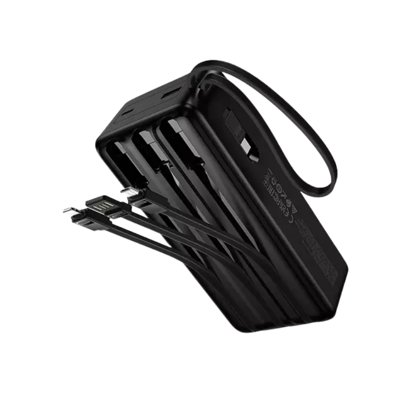 Four built-in charging cables including usb-c lightning micro-usb and a usb-a input cable eliminate the need to carry any extra wires.