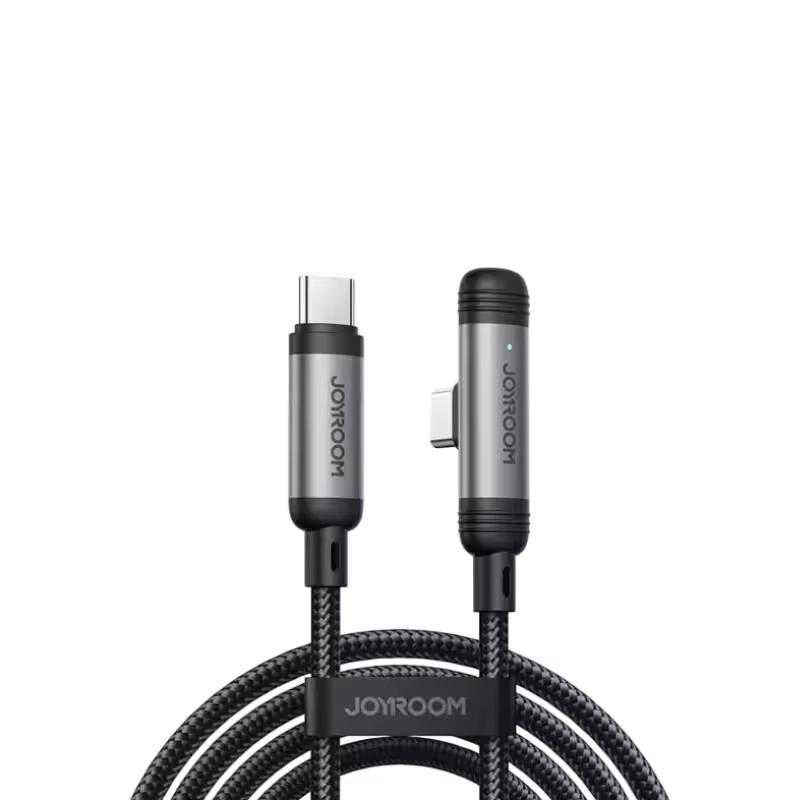 The JOYROOM S-A56 EnjoyX Series is a specialized high-performance data and charging cable designed specifically for mobile gamers and power users. Its standout feature is the 90-degree right-angle connector, which prevents the cable from protruding while you hold your device horizontally, ensuring an ergonomic and uninterrupted gaming or movie-watching experience. This cable is built to handle up to 60W of Power Delivery, making it suitable for everything from the newest iPhones and Android flagships to high-demand tablets and laptops. Constructed with premium zinc alloy heads and a 48-strand high-density nylon braid, it is engineered to be incredibly tough, surviving over 10,000 bends and heavy tension. With integrated safety chips to prevent overheating and support for 480Mbps data speeds, the S-A56 is the ultimate durable companion for your modern Type-C ecosystem.