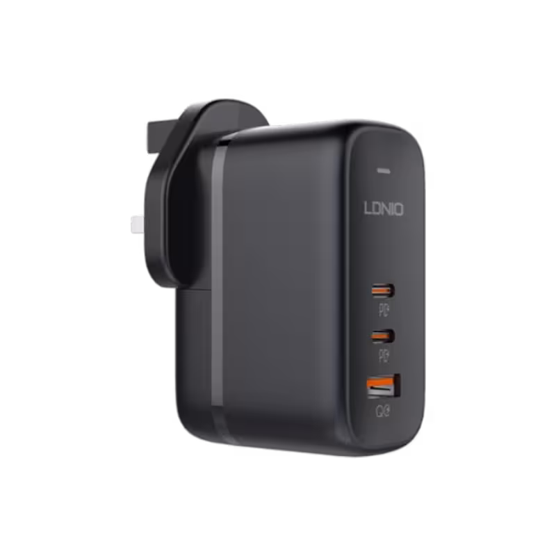 The LDNIO Q366 65W GaN Super Fast Charger is an all-in-one charging powerhouse designed for the modern multi-device user. Featuring cutting-edge GaN technology, this charger delivers up to 65W of power from a single USB-C port, making it strong enough to charge a laptop. Its standout feature is the replaceable plug system, which includes US, EU, and UK pins, making it a truly global travel adapter. With two USB-C ports and one USB-A port, it eliminates the need for multiple bricks on your desk. For users in Bangladesh, it offers a safe, fast, and highly portable way to keep everything from a MacBook to an iPhone or Android device powered up.